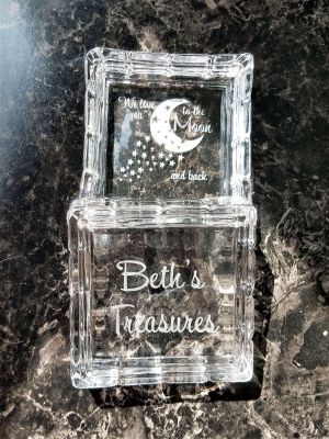 The Mars custom engraved trinket box is a great award for employees, awards, or for your reception area. This trinket box is rectangular and has plenty of room for your logo or custom artwork on the base and the lid. It is 6-3/4 inches long, 2-7/8 inches wide and is 2-3/8 inches high. It also makes a nice gift for wedding and birthdays. Alternatively, if you flip it over it also makes a nice butter dish. ou can customize it however you'd like, feel free to send me a custom order request with your idea!